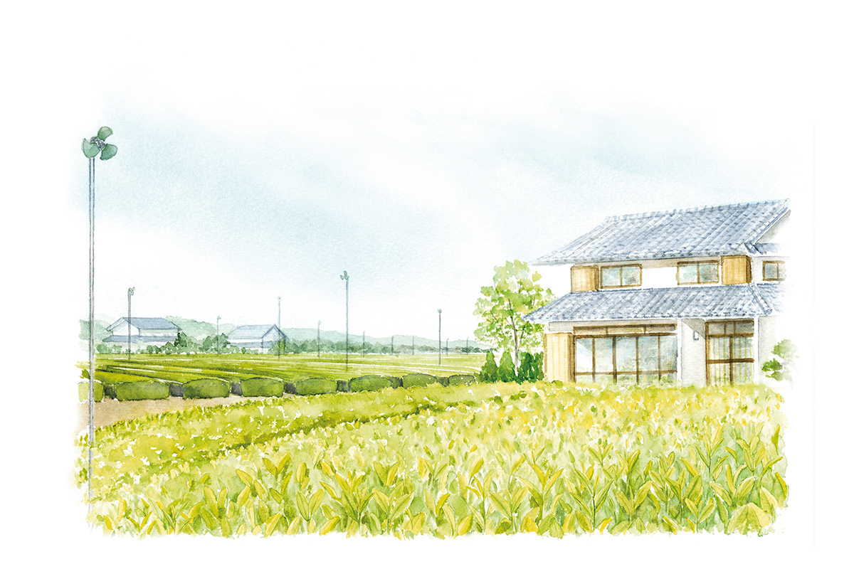 茶畑に行ったのは初めてだったので、縁側のすぐ前にお茶の木が植えられていることに驚いた。東京でも緑の少ないところで育った私は、畑や田んぼにもなじみがない。だから、それまで見聞きした田園風景から、畑というのは、家からすこし離れた場所にあると思い込んでいた。しかし実際は、すぐ庭先にあったのだ。家庭菜園ではなく、出荷する作物の畑がこんなに人家の近くにあることが私の目には新鮮にうつった。