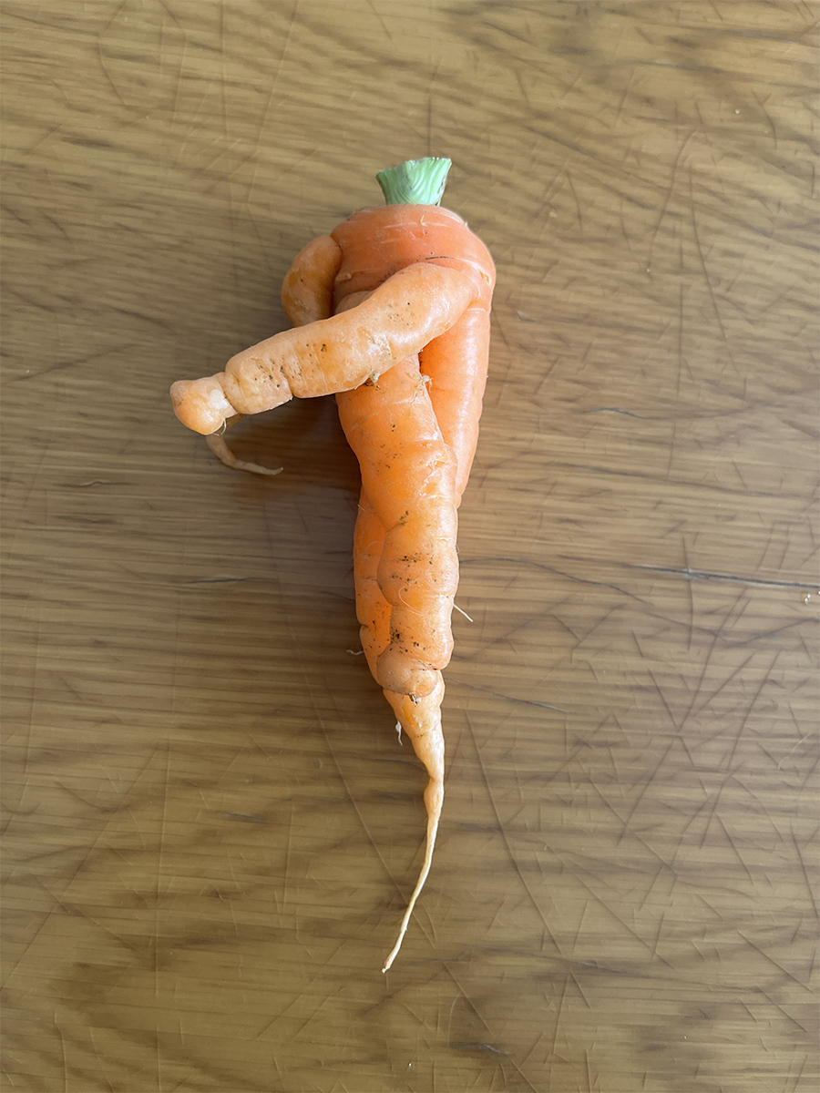 試しに掘ってみたら、育っていました。10本くらいのうち、まっすぐな子は2本で、他はみんな、又根になってました。