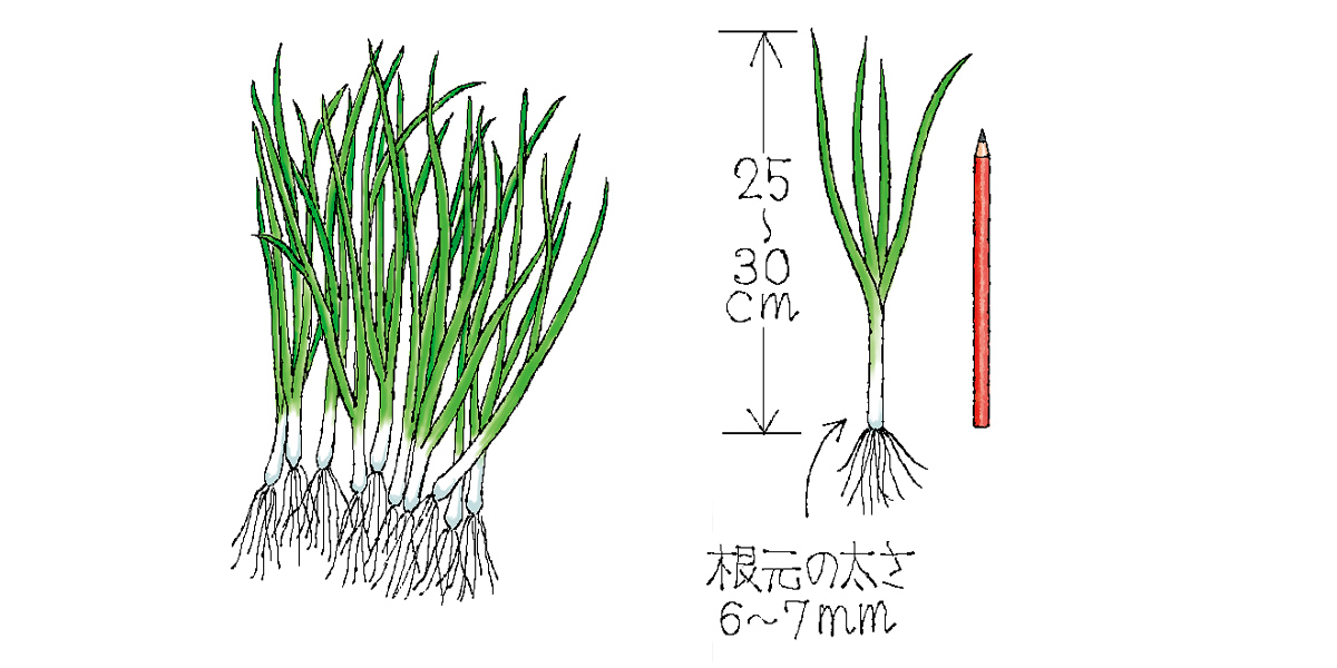 草丈25~30cm、根元の太さ6~7mmの鉛筆くらいの太さで、根が白くよく伸びているものを選びましょう。