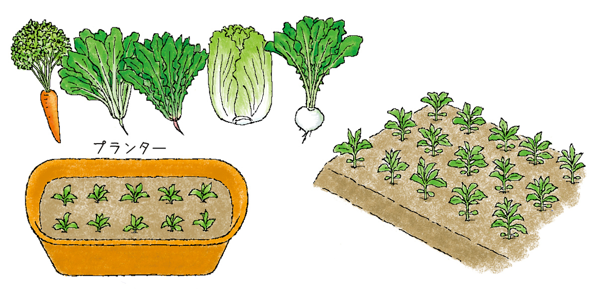★ニンジン、コマツナ、ホウレンソウ、シュンギク、カブ、ハクサイなど