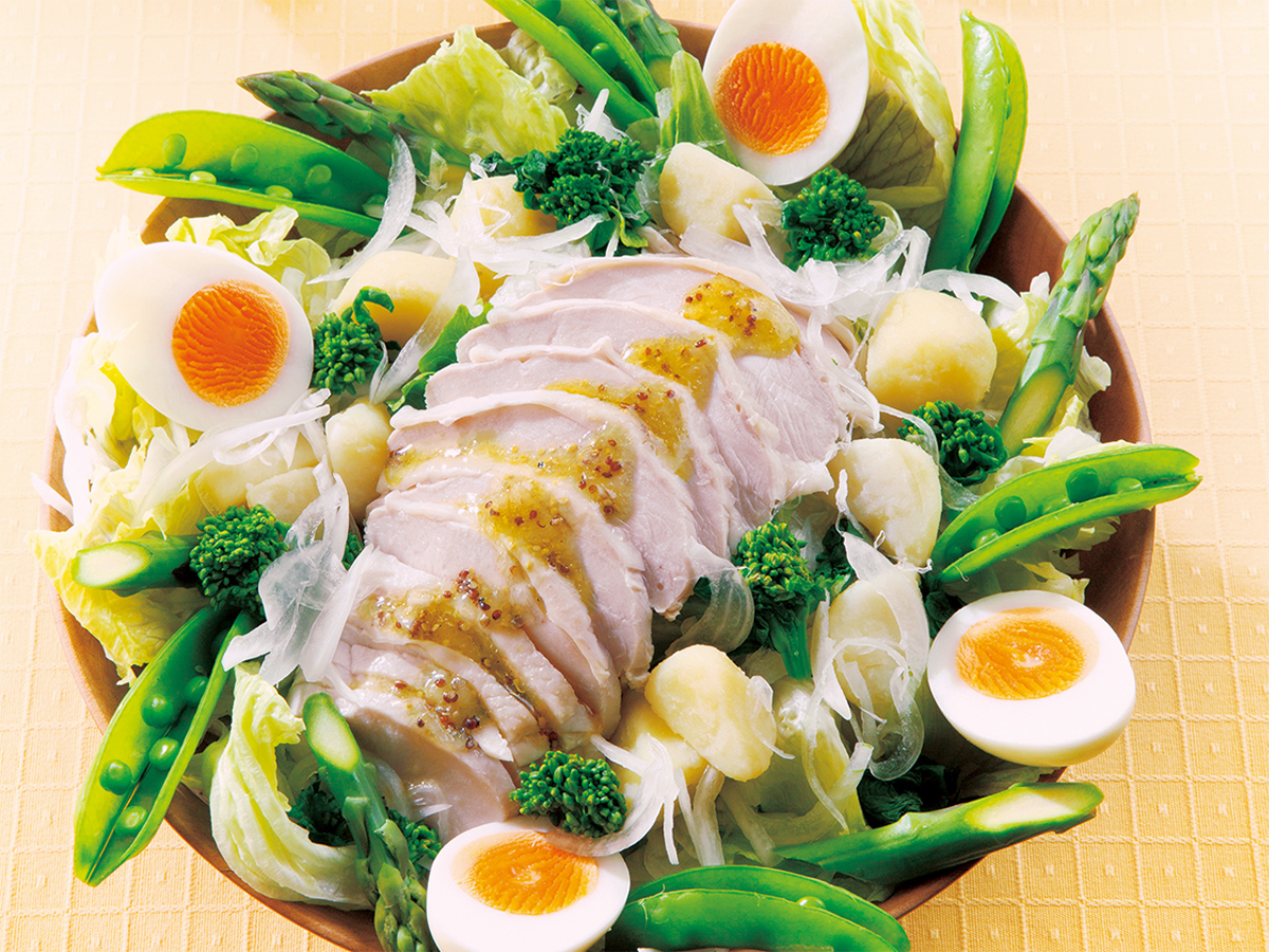 メインにもなるボリューム満点なサラダですゆで鶏と春野菜のサラダ
