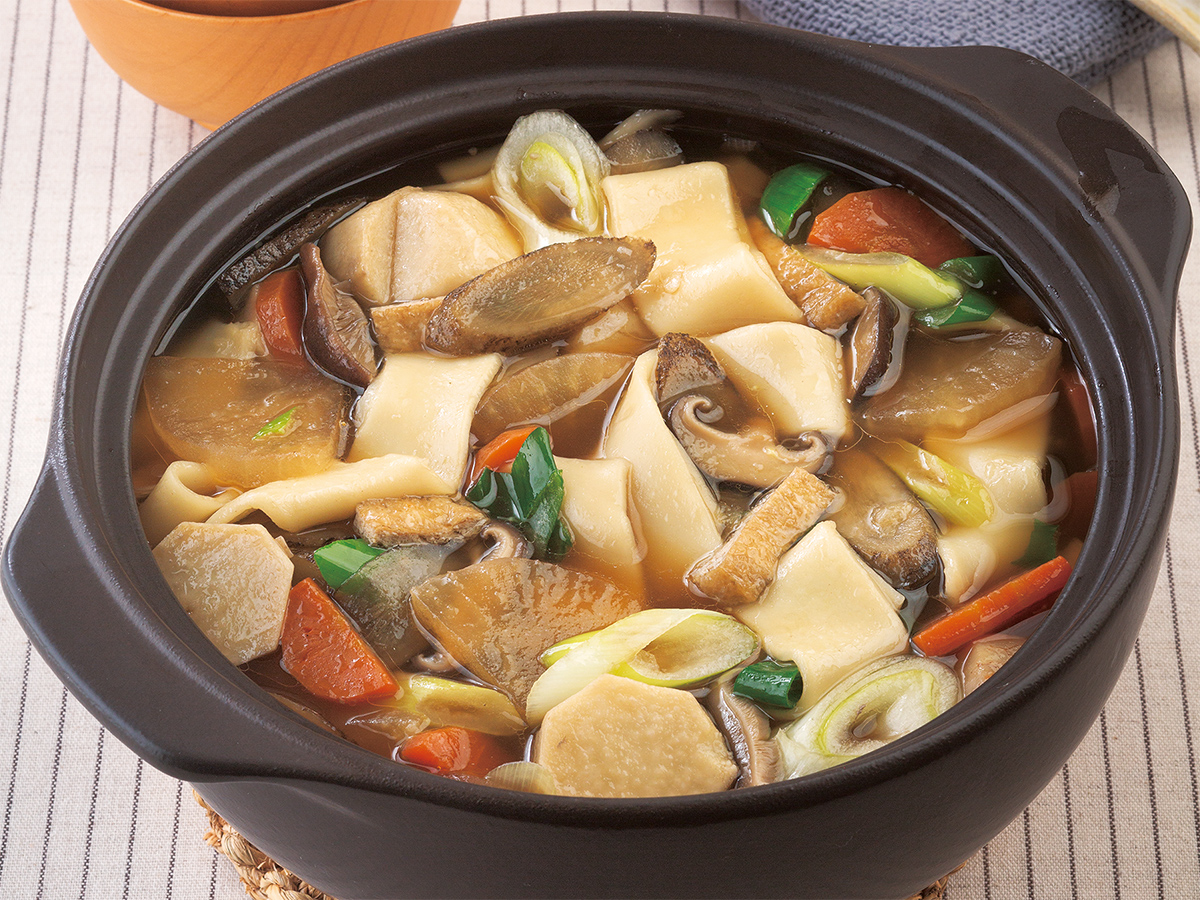 幅広の小麦麺を野菜やきのこなどと煮込んだ群馬の郷土料理おっきりこみ