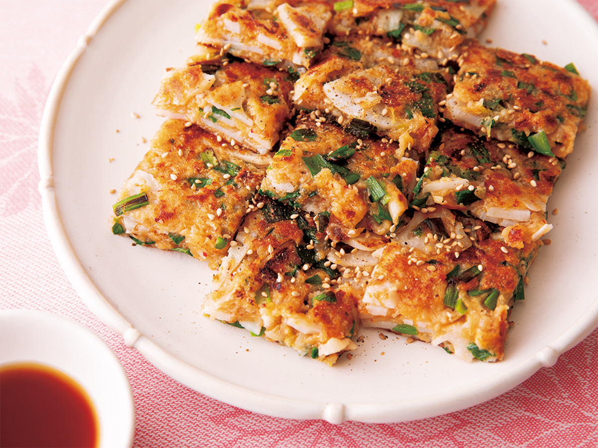 フライパンに油を熱して3を平らにのばし入れ、強めの中火で5分程焼き、裏に返して4~5分焼く。