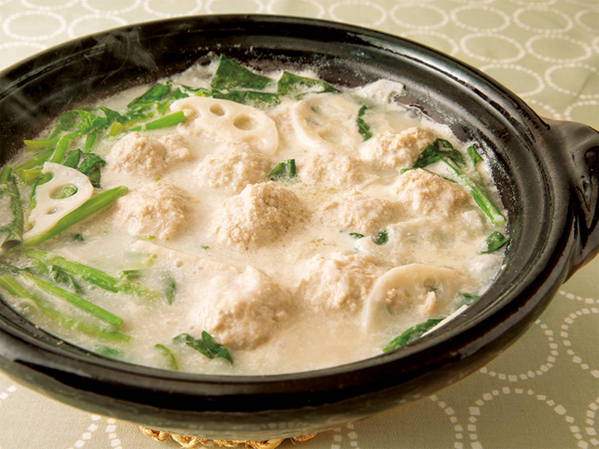 ボウルにひき肉、卵、しょうが、1のすりおろしれんこん1/2量、塩小さじ1/3を加え、手で粘りが出るまで混ぜ、水で濡らした手でピンポン玉大に形作る。