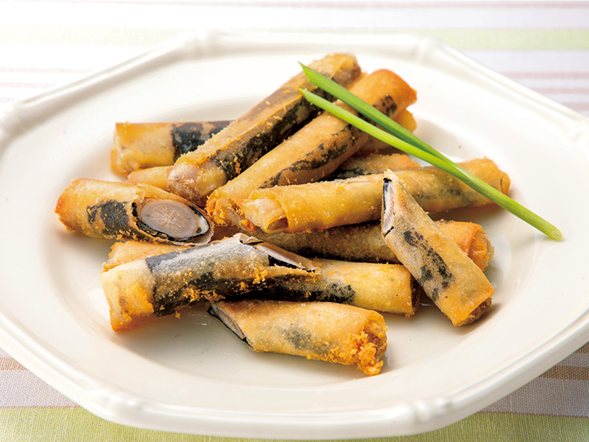 フライパンに1cmほど油を入れて160℃に熱し、2を巻き終わりから入れ、転がしながら揚げ焼きにする。