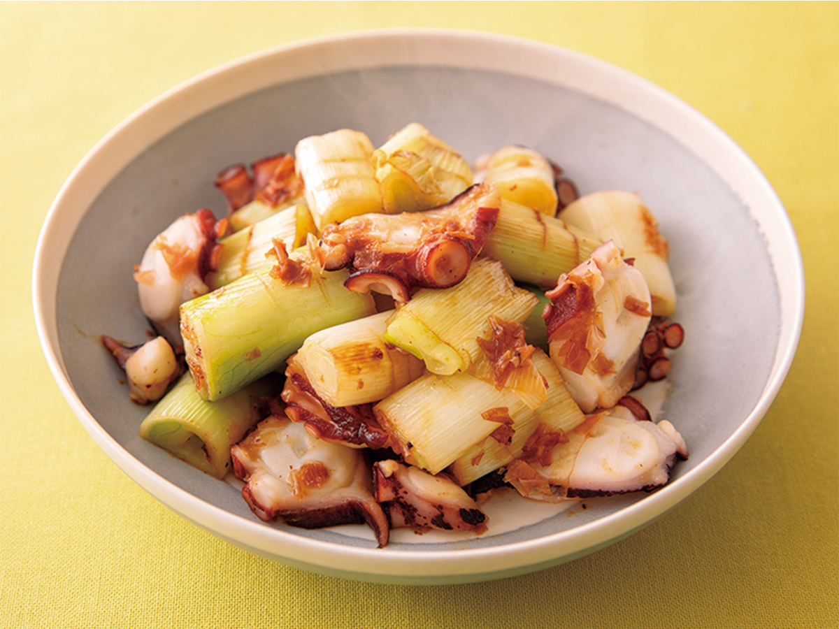 ねぎのアイデアおかずねぎとタコのバターかつお節焼き