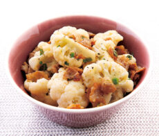 白ワインを回し入れてアルコールを飛ばし、カリフラワーを入れ軽く炒めたら、Aを加えて10分ほど煮る。